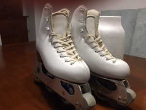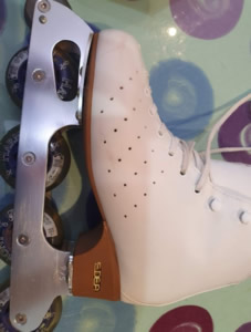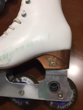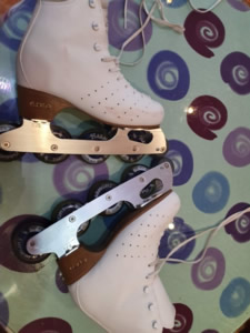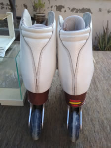 Patines PAL de dureza RF. Número de guía: 9.75. Puede soportar hasta un 41. Número de bota 40. Han sido usadas durante un curso.